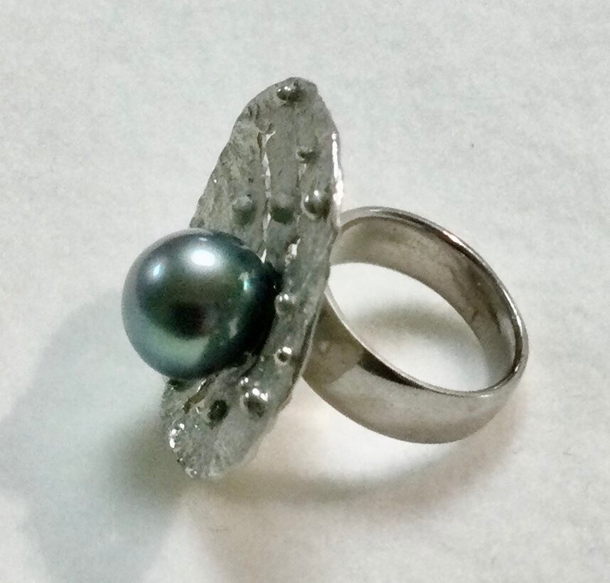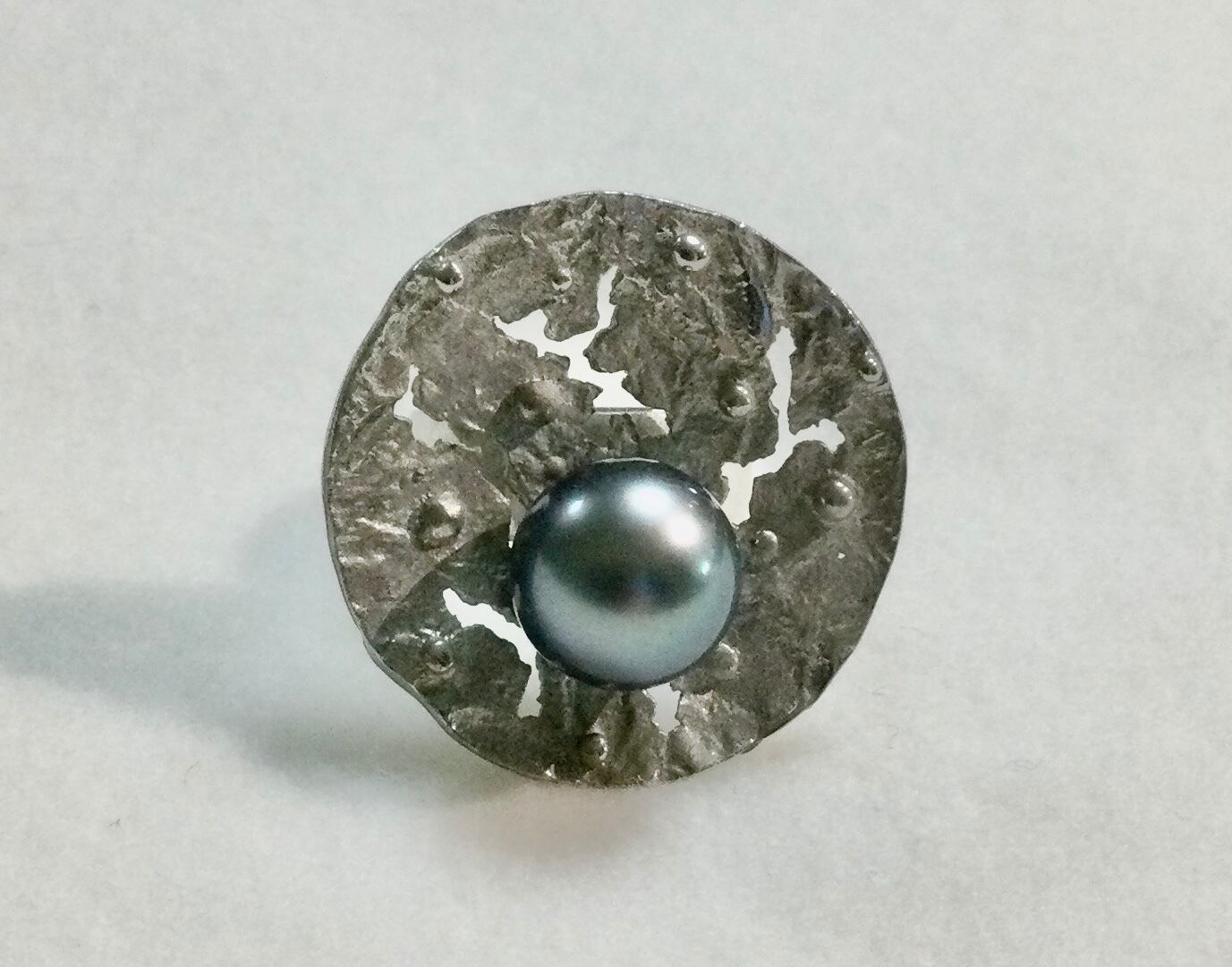 シルバー黒蝶真珠リング